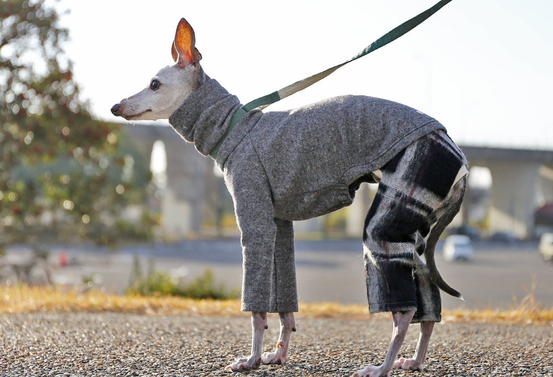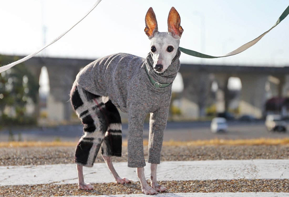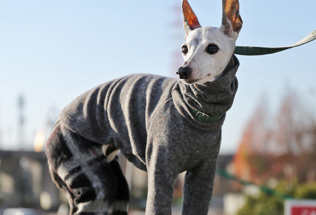 Wool-blend knit + Alpaca-blend shaggy knit (gray) - Italian Greyhound Clothes