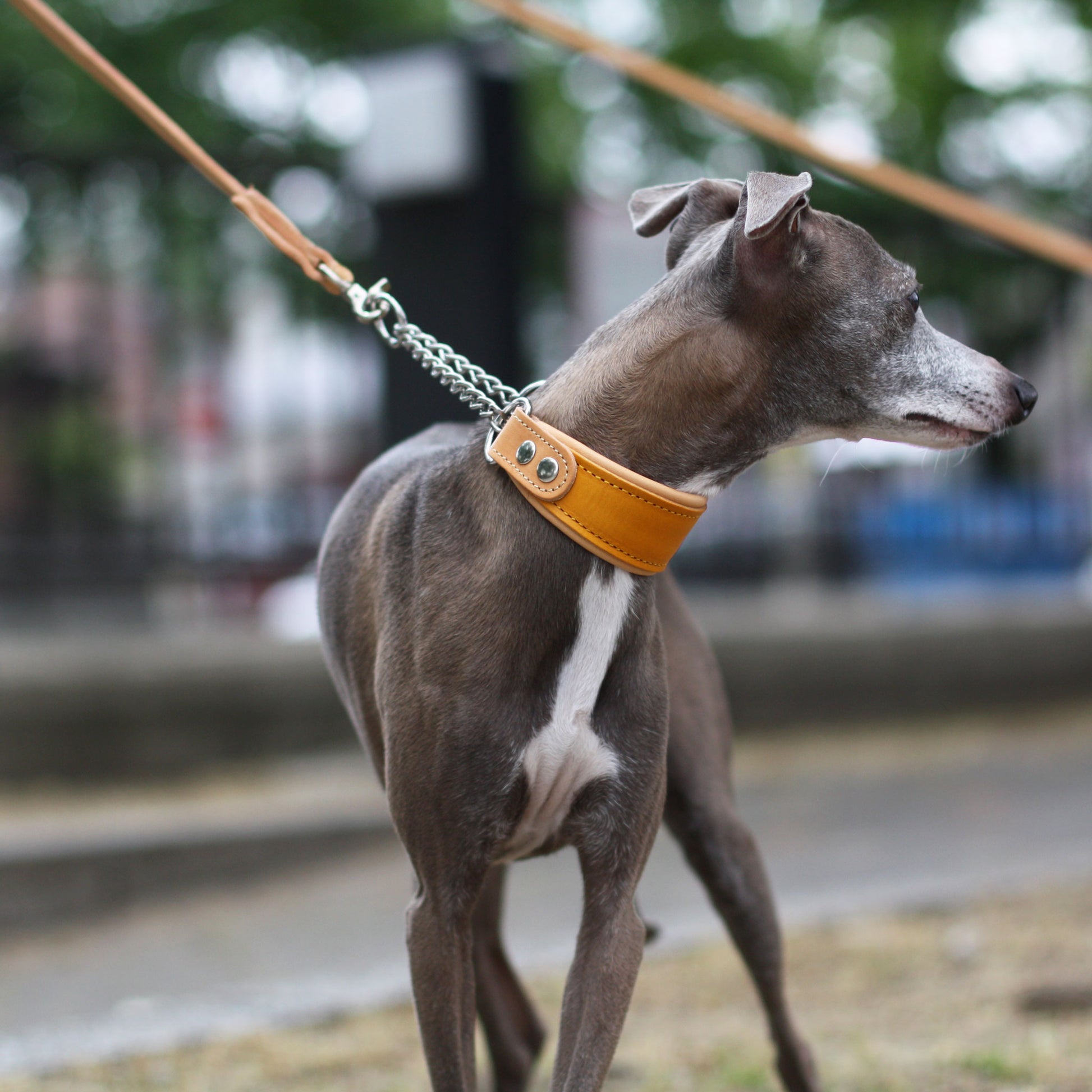 Italian leather half choke collar (mustard)