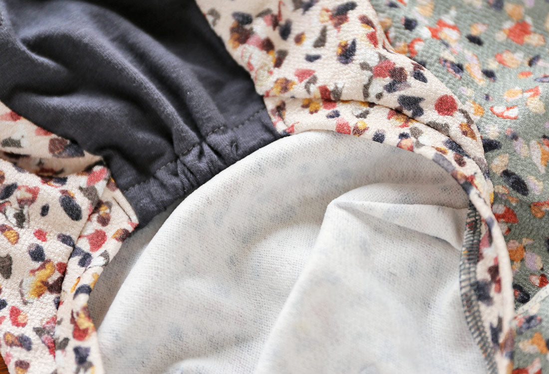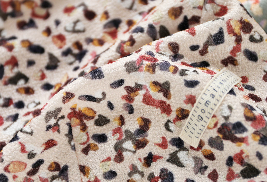This piece uses a stretchy chirimen knit, featuring a beautiful, moist sheen reminiscent of butterfly wing scales, paired with a calm, elegant color palette.